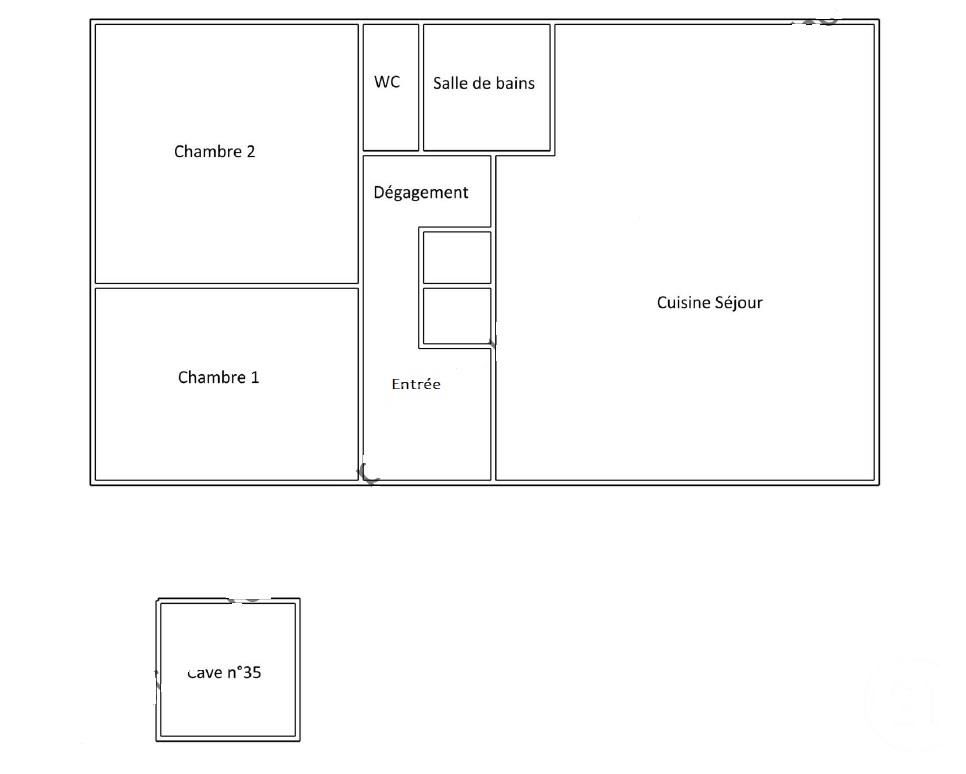 Séjour avec coin cuisine équipée, 2 chambres, SDE, wc, nombreux rangements