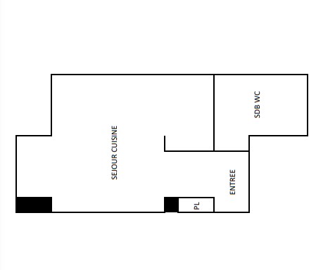 Pièce de vie avec coin cuisine équipée, SDE avec wc, rangements